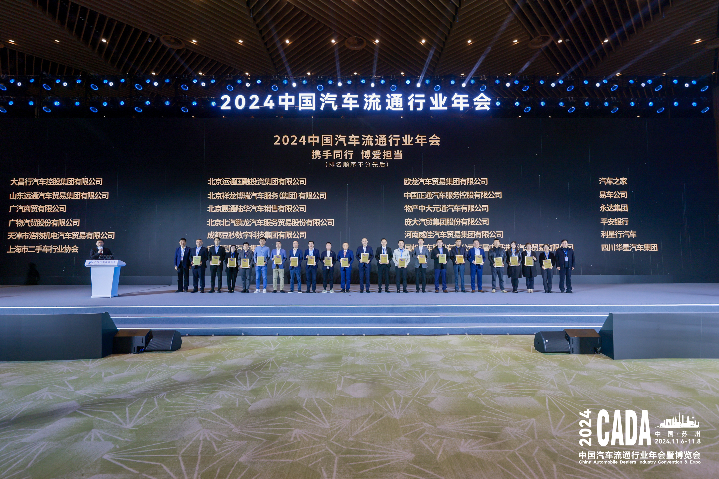 11月6日至8日,“2024中国汽车流通行业年会”在苏州盛大举行,产业链和流通领域的各方伙伴齐聚一堂,通过行业年会及研讨,研判市场与行业发展趋势,探寻企业转型升级之路,推动行业内外和国际国内交流合作。